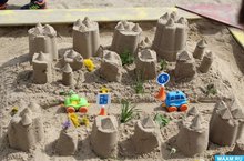 В начале лета в нашем ДОУ состоялся конкурс построек из песка "Песочные фантазии". Целью конкурса было создание благоприятных условий для воспитательно – образовательной деятельности с детьми в летний период. Материала для поделок было много.По условиям конкурса постройки можно было дополнять бросовым, природным материалом, строительным материалом. В выборе темы не было ограничений. Воспитатели и ребята фантазировали на разнообразные темы. В постройке использовали сухой и влажный песок, различные формочки для обыгрывания