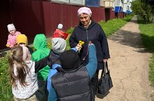 Ребята старшей группы «Фантазёры» в преддверии праздника «День Победы» отправились на акцию «Георгиевская ленточка»!