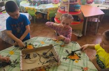 В подготовительной к школе группе «Радуга» продолжается реализация проекта «Происхождение человека». Вместе с воспитателем группы Нагиевой Л.А. дети узнали много интересного о первобытных людях, рассуждали на тему появления огня в жизни человека: как он в первый раз столкнулся с огнём, как было тяжело его сохранить, как научился добывать огонь. А ещё дети сами сделали орудие труда первобытного человека - топор- и убедились, что это очень не лёгкое занятие. -