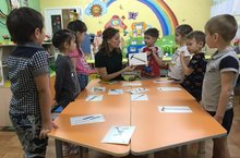 Сегодня 10 русскоязычных детей приняли участие во внутрисадовской олимпиаде по проекту "Говорим по-татарски". Все участники долго готовились к данному "испытанию" на знания татарских слов, умение составлять словосочетания, небольшие рассказы, переводить с русского языка на татарский, читать пиктограммы, а также исполнять творческие номера на татарском языке. Так победителями стали: