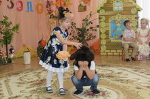 Сегодня дети из группы "Звёздочки" путешествовали в гости к Осени-Несмеяне. Как же горько плакала Осень что с её приходом птицы улетают на юг, насекомые и животные прячутся от наступающих холодов. "Звёздочки" весёлыми играми, душевными песнями растопили сердце Несмеяны - перестала она плакать. Стала вместе со всеми хороводы водить да урожаем осенним угощать.