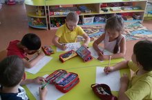 Существует мнение, что воображение ребенка богаче, чем воображение взрослого человека. Это основано на том, что дети фантазируют по самым различным поводам. Неустанная работа воображения - это один из путей, ведущих к познанию мира, который окружает ребёнка. Так, сегодня детям было преждложено представить себе несуществующее животное и нарисовать его. В этот момент в группе "Ромашки" развернулась настоящая творческая работа над созданием образа своего животного - самого необычного, самого смешного, самого милого и неповторимого. А сколько было радости на лицах детей, когда они презентовали своих питомцев, давая им не только имена, но и рассказывали об их повадках, местах обитания, свойствах характера. Захватывающая атмосфера неугомонной фантазии и неиссякаемого воображения была перенесена в галерею творчества, где необычных животных смогли увидеть все желающие.