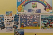 Сегодня в нашей творческой галерее открылась выставка групповых коллажей на тему из жизни морских глубин. Целую неделю дети вместе со своими воспитателями и родителями знакомились с таинственным глубоководным миром, его обитателями, которых не только рассматривали в познавательных презентациях и видеофильмах, но и рисовали, лепили, конструировали из подручных материалов. Дети младших групп организовывали аквариумы, куда запускали бумажных рыбок, создавали "комфортные условия" их среды обитания, используя песок, водоросли, камни, ракушки. Ребята постарше, в рамках опытно-экпериментальной деятельности, освивали свойства морской воды, готовили мини-проекты о полюбившемся морском представителе водной фауны.