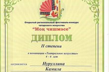 Управление образования и по делам молодежи г. Набережные Челны, МБУ «Информационно-методический центр» на базе МАУДО «Детская школа искусств № 13 (татарская)» города Набережные Челны организовали открытый региональный фестиваль-конкурс татарского искусства «Моң чишмәсе». В номинации "Театральное искусство" выступала воспитанница нашего детского сада группы "Салават купере" Нуруллина Камилла, которая под руководством педагога по обучению татарскому языку, среди 50 участников, съехавшихся на конкурс со всей республики, блестяще исполнила произведение на татарском языке и заняла 2 место!Поздравляем Камиллу и Минзилю Тауфиковну с победой! Молодцы! -