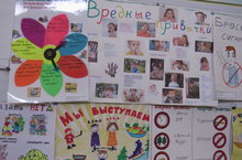 В рамках конкурса рисунков и плакатов «Это плохо!» по профилактике вредных привычек сегодня была организована выставка творческих работ. Целью выставки явилось предоставление возможности детям, педагогам и родителям выразить свое отношение к вопросу пропаганды здорового образа жизни, внести свой вклад к развитию наглядной рекламы. Плакаты были представлены в номинациях: «Сумейте сказать НЕТ!», «Мы выступаем за здоровый образ жизни», «Полезные и вредные привычки». Все работы отличились оригинальными идеями, актуальностью, выразительными и яркими художественными замыслами.