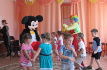 Сегодня в детском саду было необычно шумно и весело! Потому что с самого утра, в гости к именинницам - двум девочкам из старшей и подготовительной групп, пришли поздравить с днём рождения смешные и забавные герои любимых мультфильмов - клоунесса Ириска со своим другом Микки Маусом! Это стало возможным в нашем саду в результате введённой новой дополнительной платной услуги "День рождения в саду". В программу были включены весёлые розыгрыши, танцы, шутки, игры, подарки, шоу мыльных пузырей. Для именинниц, по традиции, дружно спели "Каравай", не забыли про "поздравлялки", "Желалки" и "кричалки". Вообщем, праздник удался на славу!
