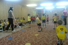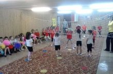 Сегодня в детском саду стартовал чемпионат ДОУ по пионерболу. Открыла его игра между девочками старшей и старшей (татарской) группы.