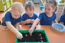 В детском саду проходит акция по формированию экологической культуры "Витамины на подоконнике" с целью обобщения и расширения знаний дошкольников о том, как ухаживать за растениями в комнатных условиях, формирования у детей интереса к опытнической и исследовательской деятельности по выращиванию культурных растений в комнатных условиях. У ребят 2 младшей группы "Лучики" появился небольшой огородик, где они сегодня посадили лук. Посадка лука – это и эксперимент, и опыт, и первые зеленые витамины. -