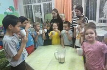 В рамках долгосрочного группового проекта «Вкусная математика» воспитанники подготовительной к школе группы «Любознайки» приготовили и продегустировали молочный коктейль. В процессе приготовления воспитанники узнали, что такое весы, блендер, как ими пользоваться, сколько в одном литре миллилитров, сколько в одном килограмме граммов и многое другое, что необходимо знать для приготовления блюда по рецепту.