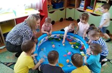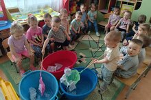 Игры с водой не только чрезвычайно увлекательны, но и очень полезны: дети получают возможность устанавливать физические закономерности, овладевать представлениями об изменении вещества, познавать его свойства и возможности. В первой младшей группе «Лучики» прошел коллективный просмотр образовательной деятельности по интеграции аква-терапии, игровой ситуации и элементов закаливания "В гости к рыбке". Малыши с восторгом восприняли игры с водой, где создавали комфортные условия для рыбки: украшали дно разноцветными камешками, запускали бумажные кораблики и катали их по волнам, разводили маленьких и больших рыбок, чтобы не скучно было плавать. Дети получили эмоциональную разрядку и получили положительный заряд энергии. -