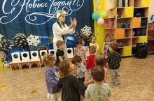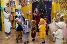 В нашем детском саду прошёл самый первый новогодний утренник для наших самых маленьких воспитанников группы «Лучики». Малыши пришли нарядные, превратившись в весёлых зверят, красивых снежинок. Все закружились в новогоднем хороводе. Малыши веселились у нарядной ёлочки с красавицей Снегурочкой, шустрым Зайчонком. Они водили с ними хороводы, играли в снежки, танцевали с погремушками. Малыши со Снегурочкой поиграли в волшебную игру «Ёлочка свети!». Помогли Снегурочке зажечь огоньки на новогодней, праздничной елочке. Она засияла разноцветными огнями. Со Снегурочкой девочки - снежинки в красивых платьицах закружились в лёгком танце у новогодней ёлки. Вместе с Зайчиком наши маленькие зверята отплясывали весёлый танец. Дедушка Мороз в конце праздника всем подарил подарки. Утренник прошёл в теплой сказочной атмосфере. -