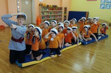 24 декабря 2019 года в старших группах "Цветочки" и "Фантазёры" прошло физкультурное развлечение "Путешествие на банановый остров". Ребята вместе с боцманом отправились на необитаемый остров за сокровищами, они преодолели много препятствий: переправлялись на шлюпках, ездили на черепахах, преодолевали реку с крокодилами, но самое интересное их ждало впереди. Клад, как оказалось, был у одноглазого пирата Джо, но ребята не испугались и смогли забрать клад своей силой и настойчивостью. Развлечение получилось очень интересным.