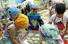 6 октября в рамках реализации проекта "Главное богатство -ХЛЕБ", воспитанники группы "Алые паруса" приняли участие в квесте "Откуда хлеб пришел?". Во время путешествия ребята разгадывали загадки бабушки Загадушки, в роли которой выступила Л.А. Аношкина, участвовали в играх, предложенных З.Г. Гордеевой, логопедом детского сада. На станции "Любознайкино", Раяна Г. рассказала об удивительном растении хмель, о том, как с его помощью можно сделать бездрожжевое тесто и испечь бездрожжевой хлеб. Родион Ш. показал, как с помощью ручной мельницы, в домашних условиях, из зерен пшеницы, можно намолоть муку. Закончилось путешествие на станции "Вкусняшкино", где их встретила А.Я. Сайфиева. Дети вместе со взрослыми приготовили булочки с конфетами. Повара детского сада испекли приготовленные булочки, которые отличались интересным дизайном и оказались очень вкусными и ароматными.