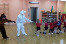 19 октября во второй младшей группе "Смешарики" прошло физкультурное развлечение "Путешествие в осенний лес". К ребятам приходили лесные жители: Белочка, Зайчик, хитрая Лисичка и Медведь, которые играли с ребята в разные игры.