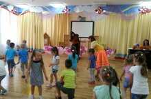 11 августа к нашим маленьким воспитанникам, которые ходят в детский сад только несколько дней, прилетел в гости Карлсон. Ребята играли с разноцветными мячиками, превращались в пузыри, а Карлсон показал детям фокус превращения прозрачной воды в цветную. В конце развлечения дети с удовольствием пускали мыльные пузыри.