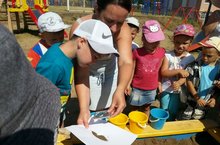Вместе с воспитателями на прогулке ребята изучают свойства природных материалов. Сегодня занятие в "исследовательской лаборатории" было посвящено свойствам песка. Одкуда берется песок? Каким бывает песок? Для чего он нужен? Такие вопросы решали воспитанники средней группы с воспитателем К.В.Фазлиевой.Развитие познавательных интересов детей - важнейшее направление работы педагогического коллектива в летний период.