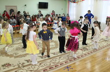 Вчера в старшей группе "Светлячок" прошел утренник посвященный Международному женскому дню "Царь-Горох и русские красавицы". С послание к ребятам от Царя-Гороха прибыл скоморох, который огласил царский указ: он искал невесту для своего сына. Наши девочки показали все свои умения: пели песни, рассказывали стихи, танцевали, сервировали стол и пеленали кукол. Царь хотел забрать всех девиц-красавиц, но наши отважные мальчики сумели отстоять своих девочек.