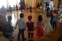 После зимних каникул для детей было проведено мероприятие "Прощание с елочкой". Персонажи: волк, заяц, медведь и снеговик - играли с детьми в подвижные игры,водили хороводы, пели новогодние песни и попрощались с елочкой до следующего года.