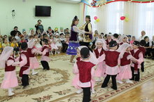 Сегодня у нас в саду прошел конкурс музыкально-словесных игр "Күңелле балачак". В нем приняли участие все 7 групп. Гран-при взяла 2 младшая группа "Непоседы", воспитатели группы Лобанова Марина Анатольевна, Семенова Ольга Валерьевна. Также с творческим концертом выступила вокальная группа Дворца культуры "Солнечные лучики", руководитель группы Галимова Рамзия Ахметовна.
