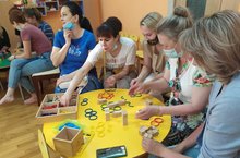 Людмила Николаевна провела с родителями анкетирование «Игры в нашей семье», игровое задание «Магазин игрушек», коллективное творческое задание «Счастливое детство» в ходе которого представила родителям возможности использования развивающего дидактического набора «Дары Фребеля». Психологическая скульптура «Семейный вечер» позволила участникам не только проиграть ситуацию, но и найти наиболее положительные моменты, способствующие сохранению эмоционального благополучия всех членов семьи. И как итог, с помощью приёма «Сундук сокровищ», родители зафиксировали свои размышления и пожелания по данной теме.
