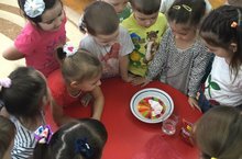 В соответствии с требованиями ФГОС, воспитателям в детском саду рекомендуется ежедневно организовать ситуации, провоцирующие познавательную активность воспитанников. Одной из форм такого воздействия является экспериментирование. По традиции, ежегодно в нашем саду проводится гостиная «Юный исследователь». Воспитанники группы «Солнышко» оказались в роли настоящих исследователей. Ульяна К. повторила свой эксперимент «Дождь» , который они проделали дома с мамой. В ходе эксперимента дети узнали, откуда берутся облака и почему идет дождь. Ясмина М. показала интересный опыт «Зубная паста для слона», который удивил детей большим количеством воздушной, яркой пены. Влад Н. рассказал, как они вместе с папой в домашних условиях сделали слайм, а еще провели опыт «Вулкан». Дети с удовольствием посмотрели видеофрагменты этих экспериментов. Итогом мероприятия стало награждение участников грамотами за активное участие и стремление к познанию всего интересного.