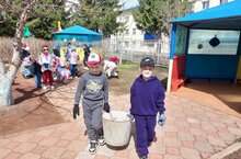 Экология атналыгы кысаларында мәктәпкә әзерлек төркеме балалары тәрбиячеләр белән берлектә балалар бакчасы территориясен җыештыруда катнаштылар.Корыган яфракларны җыйдылар. Кечкенә тырмалар белән участок тирәсен җыештырдылар.