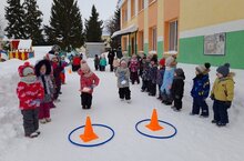 Больше всех наступлению зимы радуются дети. И не случайно, ведь именно зима предоставляет замечательную возможность весело и с пользой для здоровья проводить время на свежем зимнем воздухе. Именно зимой проходят самые волшебные праздники, чудеса, много различных, ни с чем несравнимых развлечений! С появлением снега сразу появляется множество идей, как сделать прогулку для ребенка активной, наполненной положительными эмоциями. Если снег - значит скучать на улице не придется! Придется бегать, прыгать, строить, прятаться, кататься, да ещё много чего придется делать! Именно так мы и поступили! Праздник – для любого ребёнка радость, а если это спортивный праздник, то радость в двойне. 21 января провели спортивное развлечение для старшей и подготовительной группы- "Зимние забавы". Дети приняли участие в веселых эстафетах: катали детей на санках, играли в зимние подвижные игры, соревновались в прыжках, в беге, померялись силой с помощью перетягивания каната, играли в снежками, искали спрятанные флажки. Праздник принёс радость и заряд бодрости!
