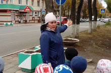 Старшая группа, с целью закрепления знаний о дорожных знаках и правил поведения на дороге и на улице, вышла на экскурсию по нашему микрорайону. Воспитатель поясняла, что все должны убедиться, перед началом движения, что машины остановились и пропускают пешехода. Нельзя подойдя к пешеходному переходу начинать движение через дорогу, водитель машины мог их не заметить из - за кустов на обочине или по другой причине. Обязательно надо убедиться, что машина остановилась, и только тогда начинать движение.