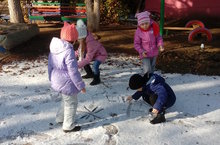 Ура! Первый снег! Такая радость на душе. Всем сразу захотелось слепить снеговика. Снег липкий, как раз подходящий. У деток все получилось легко и быстро. Правда снеговики получились очень маленькие, но от этого радости было не меньше.