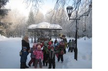 Сегодня старшая группа нашего сада вышла на экскурсию по городу. они прогулялись по аллее, любуясь заснеженными деревьями. Развесили и наполнили кормушки, сделанные своими руками.