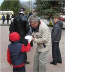 Мы прошли по улицам города, раздавая прохожим георгиевские ленточки - ленточки, узнаваемые по всему свету. С большим трепетом горожане принимали из рук ребят символ великой Победы, старшее поколение со слезами на глазах высказывали слова благодарности, и даже водители останавливались прямо на проезжей части, чтобы получить из рук ребят символическую ленту.