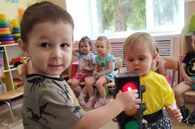 1 младшая группа 2 продолжает знакомство с элементарными правилами дорожного движения. С детьми проведена беседа: «Друг на дороге». Дети с интересом разглядывали макет светофора. Играли в подвижную игру: «Зелёный-иди, красный – стой!»