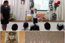 Воспитатели Кузьмина Л. А. и Евсеева Е.В. со своими воспитаниками подготовительной группы № 1 организовали различные мероприятия с целью осуществления патриотического воспитания и воспитания любви к Родине, формирования представлений о празднике, посвященном Дню Победы, воспитания уважения к ветеранам войны. Организовывали дидактические игры для закрепления знаний, такие как «Военные профессии», «Собери военную технику», «Вопрос – ответ» и др. Вместе с детьми читали и беседовали на тему «Великая Отечественная война», «Защитники Родины. Ветераны», «Города герои» и д.р. Провели тематическую викторину «9 - мая День победы» в ходе, которой закрепили знания детей. Совместно организовали выставку рисунков «9 мая. День победы».