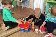 В первых младших группах, успешно идёт процесс адаптации. Основная задача в период адаптации ребёнка к детскому саду - формирование эмоционального контакта, доверия детей к воспитателю. Главным расслабляющим средством в период адаптации для дошкольников является игра. Воспитатели увлекают детей играми, в ходе которых возникает эмоциональное общение.