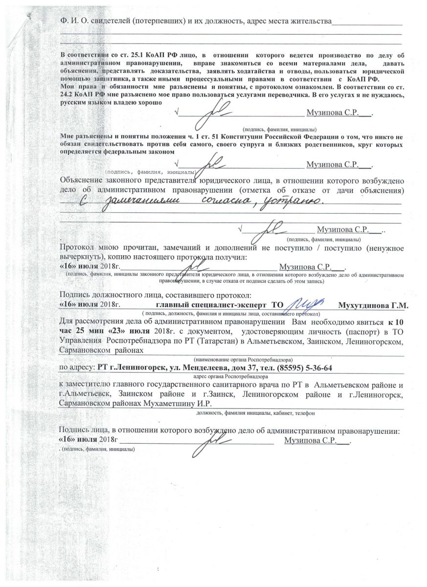 Протокол №129 от 16.07.2018 г. "Об административном правонарушении"