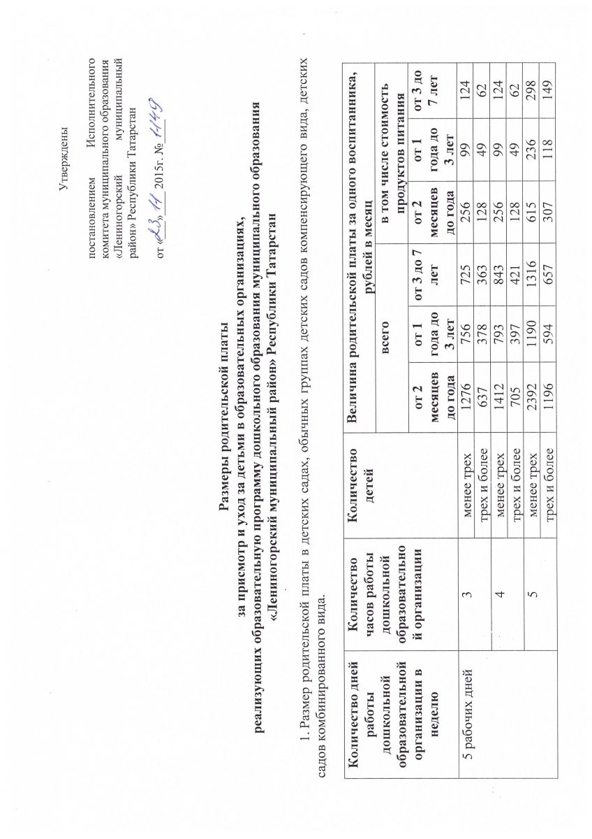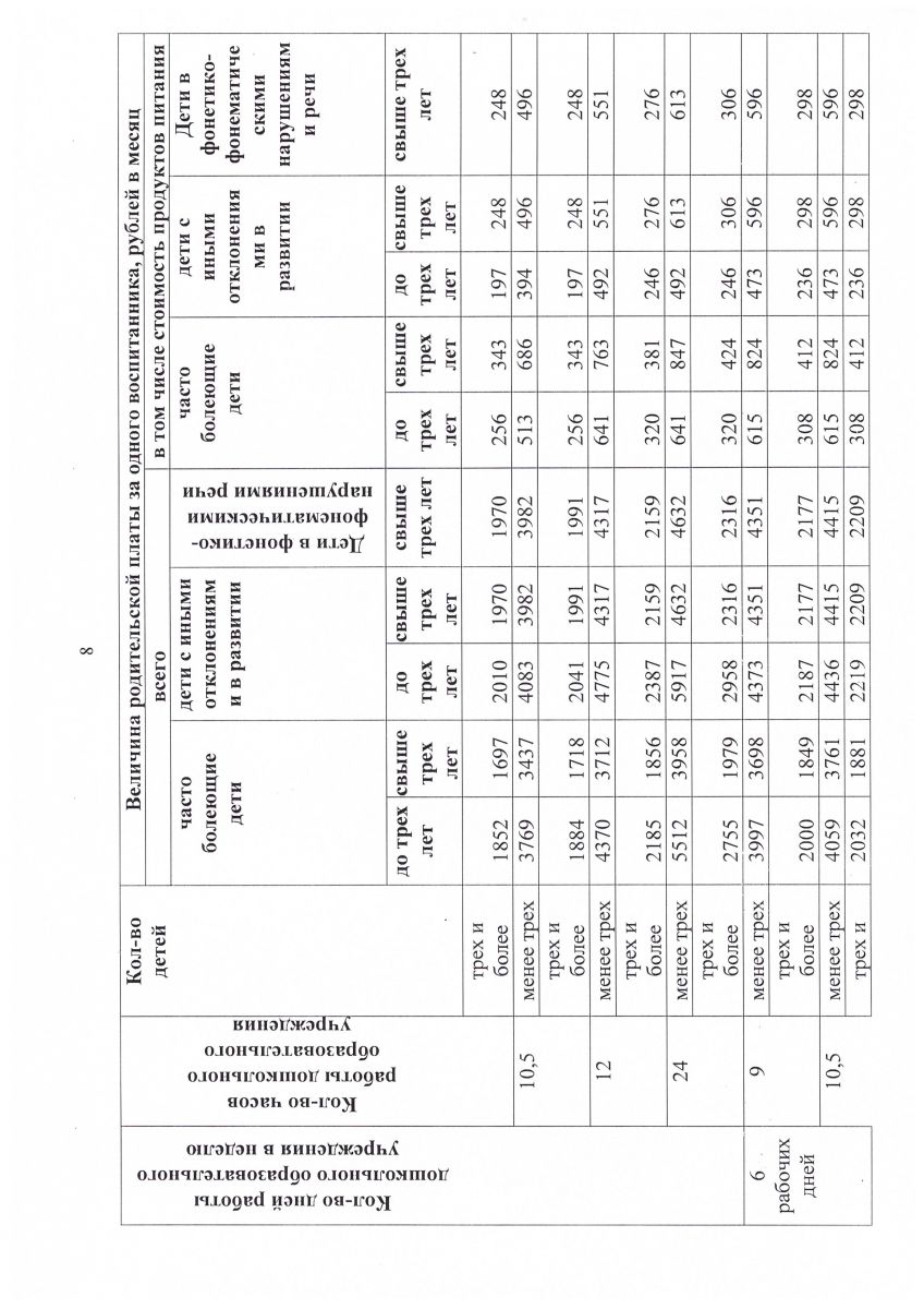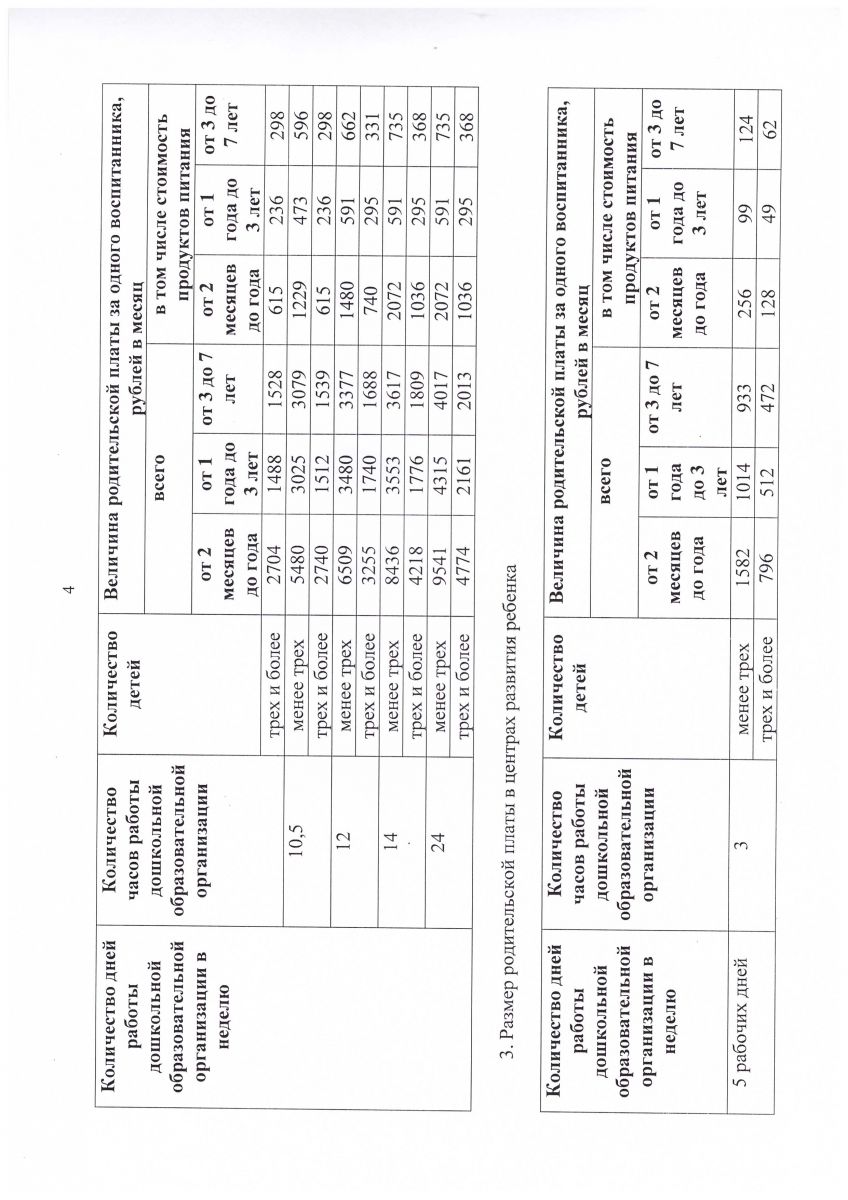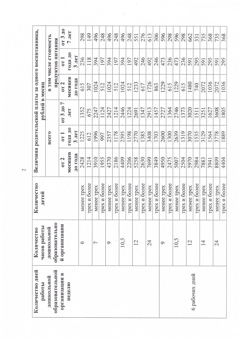 Родительская плата за присмотр и уход за детьми в ДОУ с 01.01.2020 года.