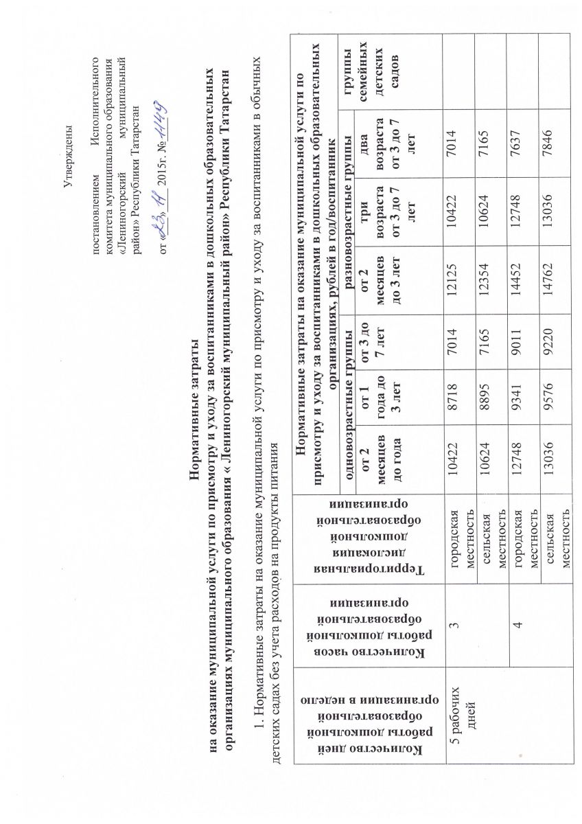 Постановление от 23.11.2015 г. №1149 Об утверждении нормативов финансирования деятельности ДОУ