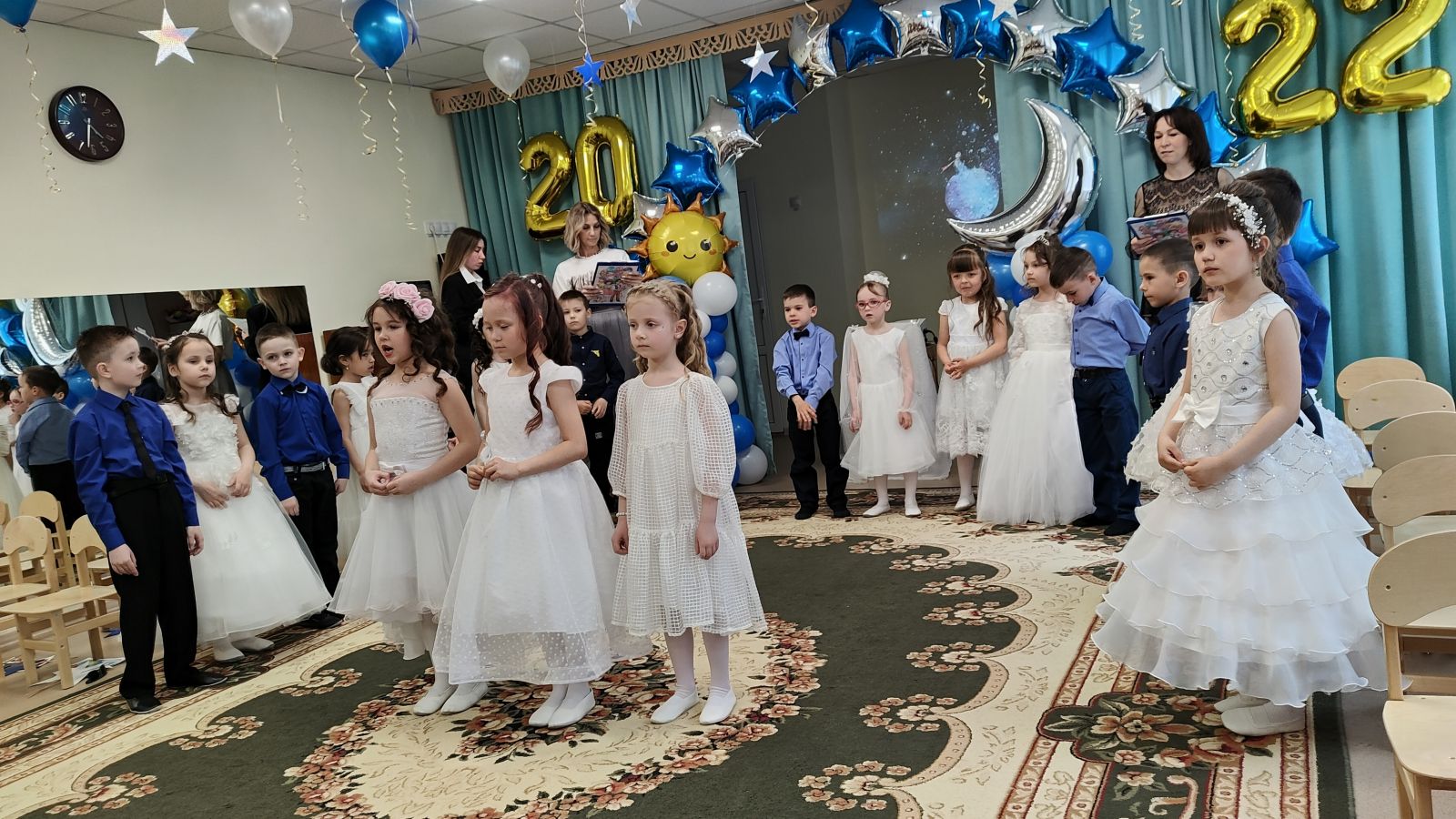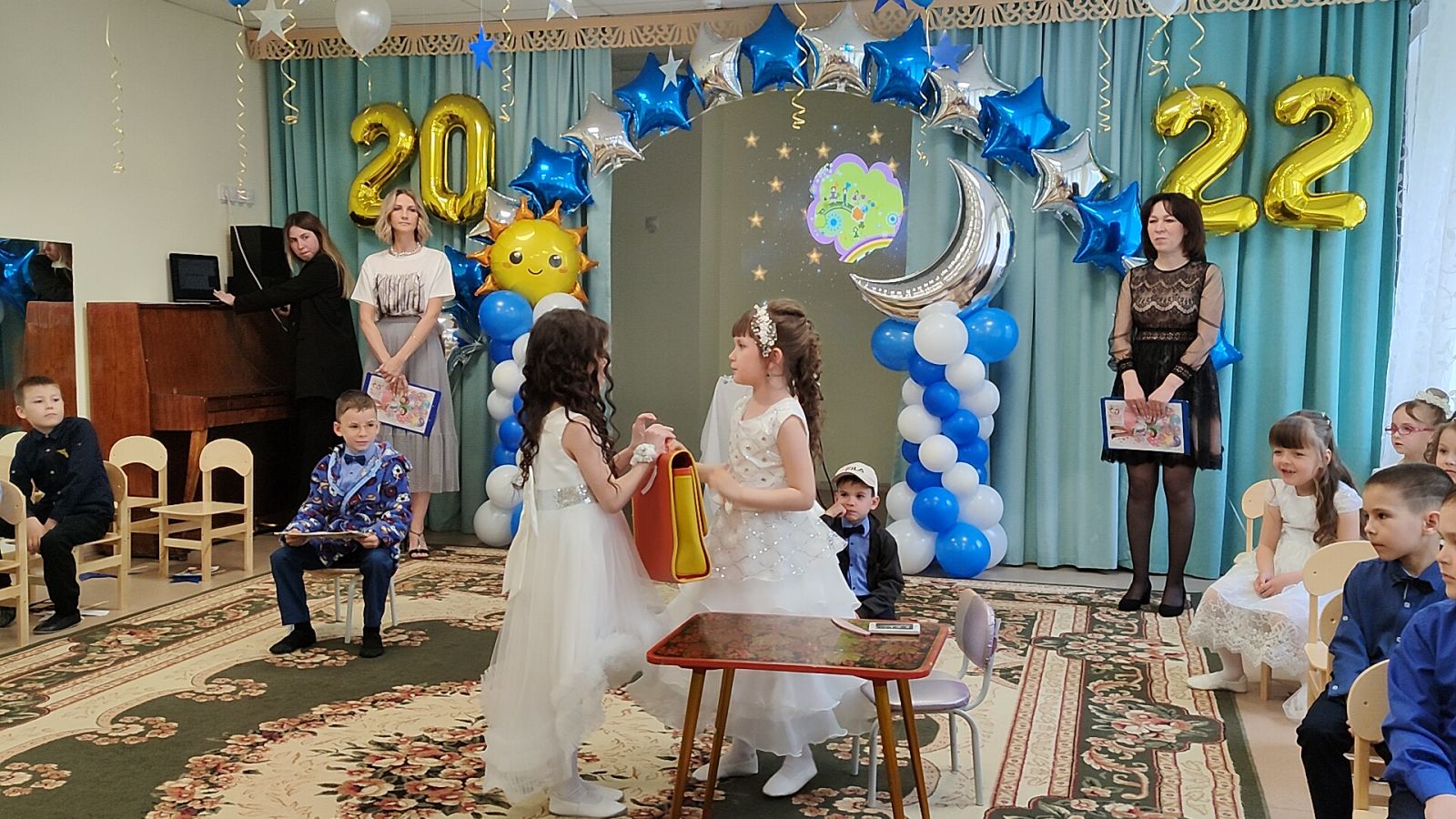 С детским садом!Выпускной бал в детском саду — это самый трогательный, самый незабываемый из всех праздников. 27 мая в нашем детском саду прошел выпускной бал. Подготовка к выпускному была очень волнительной и ответственной. Были на празднике и песни, и танцы, подарки. Праздничные костюмы мальчиков, пышные платья у девочек украсили праздник. Красивые песни про детский сад, про воспитателей, про родителей взволновали всех присутствующих. Зажигательные танцы с первых аккордов сопровождались аплодисментами зрителей. Сюрпризом было появление детей младшей группы со своими пожеланиями и прощальным шуточным танцем, а также героев Звездочета, Двойки и Ябеды. Наши дети попрощались с детским садом и готовятся к новому жизненному этапу – поступлению в школу. Позади остались дни наполненные увлекательными путешествиями в мир непознанных, неразгаданных, удивительных открытий.