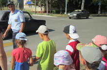 Сегодня в рамках месячника дорожно -транспортного травматизма "Внимание, дети!" прошла акция "Шагающий автобус". Инспектор по ПДД Пономарев А.П. и директор Лениногорского филиала ГУ «Дирекция финансирования научных и образовательных программ БДД РТ» Рахманова З.М. провели с ребятами подготовительной к школе группы №2 экспкурсию по дорогам города. Воспитанники вспомнили првила дорожного движения, правила перехода дороги на нерегулируемом перекрестке, закрепиил знания о сигналах светофора. Зульфия Мударисовна напомнила ребятам о необходимости иметь светоотражающие элементы.