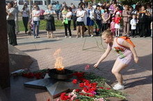 Ко Дню Победы 2012 г. проведены праздничные занятия, старшие дошкольники возложили цветы у Вечного огня.