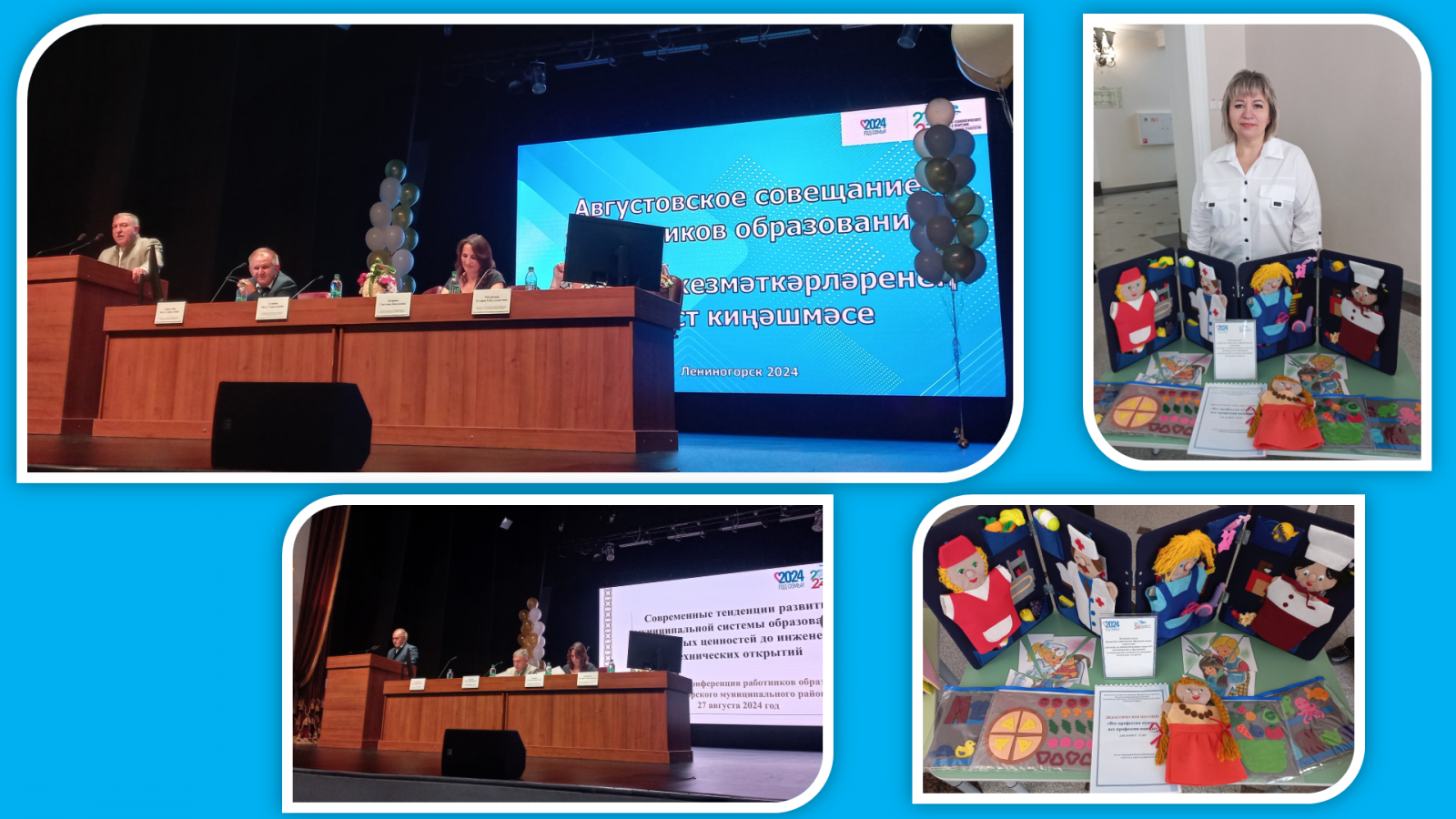 27 августа во Дворце культуры состоялась муниципальная августовская конференция работников образования 2024 года «Современные тенденции развития муниципальной системы образования: от семейных ценностей до инженерно - технических открытий», на которой были подведены итоги работы образовательных учреждений за прошлый учебный год и поставлены задачи на новый год. В рамках конференции была организована методическая выставка «Развитие инженерно - технического творчества как средство профессиональной ориентации детей». Воспитатель нашего детского сада Герасимова Наталья Валерьевна на выставке презентовала своё авторское дидактическое пособие «Все профессии нужны, все профессии важны» для детей 3 – 5 лет. Завершилась августовская конференция церемонией награждения передовых работников сферы образования.