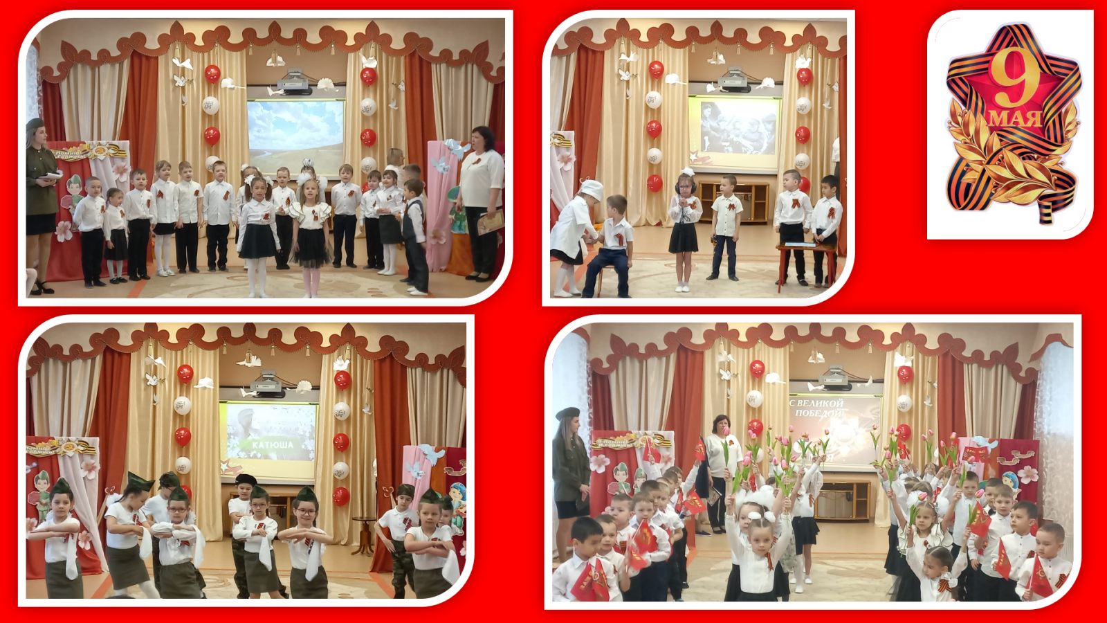 Праздник 9 Мая – это праздник Великой Победы. В день Победы каждый из нас особенно ярко чувствует гордость за свою историю. Праздник, посвященный Дню Победы, в нашем детском саду прошел 7 мая. Его участниками стали дети старших групп №1 и №2. Праздник был подготовлен музыкальным руководителем Романовой Е.А., воспитателями: Саляевой Т.Н., Галимовой Л.Р., Сидровой А.А. Проведен с целью формирования у детей знаний о Великой Отечественной войне, обогащения знаний дошкольников об истории своей страны, развития творческих способностей детей, воспитания чувства гордости за героизм нашего народа, воспитания устойчивого интереса к армии. В программу мероприятия вошли танцы, песни и стихи о войне. Все присутствующие в зале почтили память о погибших героях войны минутой молчания.