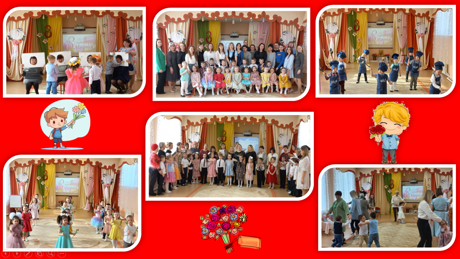 8 Марта - праздник, который дети любят и ждут, чтобы поздравить своих любимых мам и бабушек. Особых поздравлений удостаиваются наши любимые мамочки, ведь для каждого человека мама - самый близкий и родной человек на земле. По традиции в нашем детском саду во всех возрастных группах прошли утренники, посвященные 8 Марта. Утренники прошли в торжественной, радостной атмосфере, в виде яркого музыкального концерта. Дети порадовали своими творческими выступлениями. Ребята исполняли трогательные и душевные песни для мам и бабушек, веселые частушки, заводные танцы. Сюрпризным моментом были подарки сделанные руками детей. Праздник прошел в теплой, душевной атмосфере. Все получили массу впечатлений и зарядились позитивными эмоциями.
