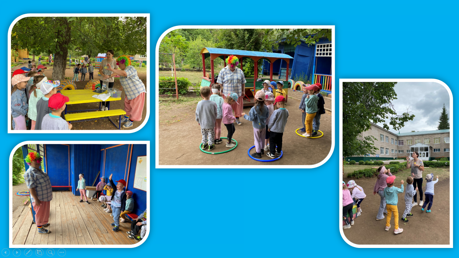 Лето – удивительная пора, когда детям можно вдоволь гулять, бегать, прыгать, веселиться. В этот период времени они много времени проводят на свежем воздухе. Очень важно организовать жизнь дошкольников так, чтобы каждый день приносил им что-то новое, был наполнен интересным познавательным содержанием. Ведь эмоционально насыщенные будни подарят детям, незабываемые воспоминания о летнем времени в детском саду и долго будут вызывать у них положительные эмоции. Летящие по воздуху переливающиеся всеми цветами радуги прозрачные шары. Что это? Конечно, каждый знает ответ – мыльные пузыри. Эта забава известна с давних времен и привлекает как детей, так и взрослых. Вот и в нашем детском саду прошел праздник мыльных пузырей. Да-да, праздник: любой, даже самый скучный день, с мыльными пузырями превращается в приключение. Это весело и красиво, а ещё – новые ощущения, новые наблюдения, новые открытия… Дети средней группы №1 и №2, воспитатель Минязова Гузель Ильфаковна отправились вместе с клоуном Клепой в Страну Мыльных Пузырей. Ребята с восторгом играли в игры, наблюдали за разноцветными пузырьками, за их волшебным превращением, проводили опыты, показывали фокусы, смеялись, прыгали от радости, визжали от восторга, хлопали в ладоши. Игровые упражнения и спортивные конкурсы позволили сделать уже традиционный праздник весёлым, интересным и познавательным. Целью данного мероприятия стало не только создание благоприятного эмоционального состояния у детей, но и развитие физических качеств, обогащение двигательного опыта, интереса к экспериментальной деятельности. Праздник мыльных пузырей принес детям море радости, света, счастья и произвел на детей незабываемое впечатление.