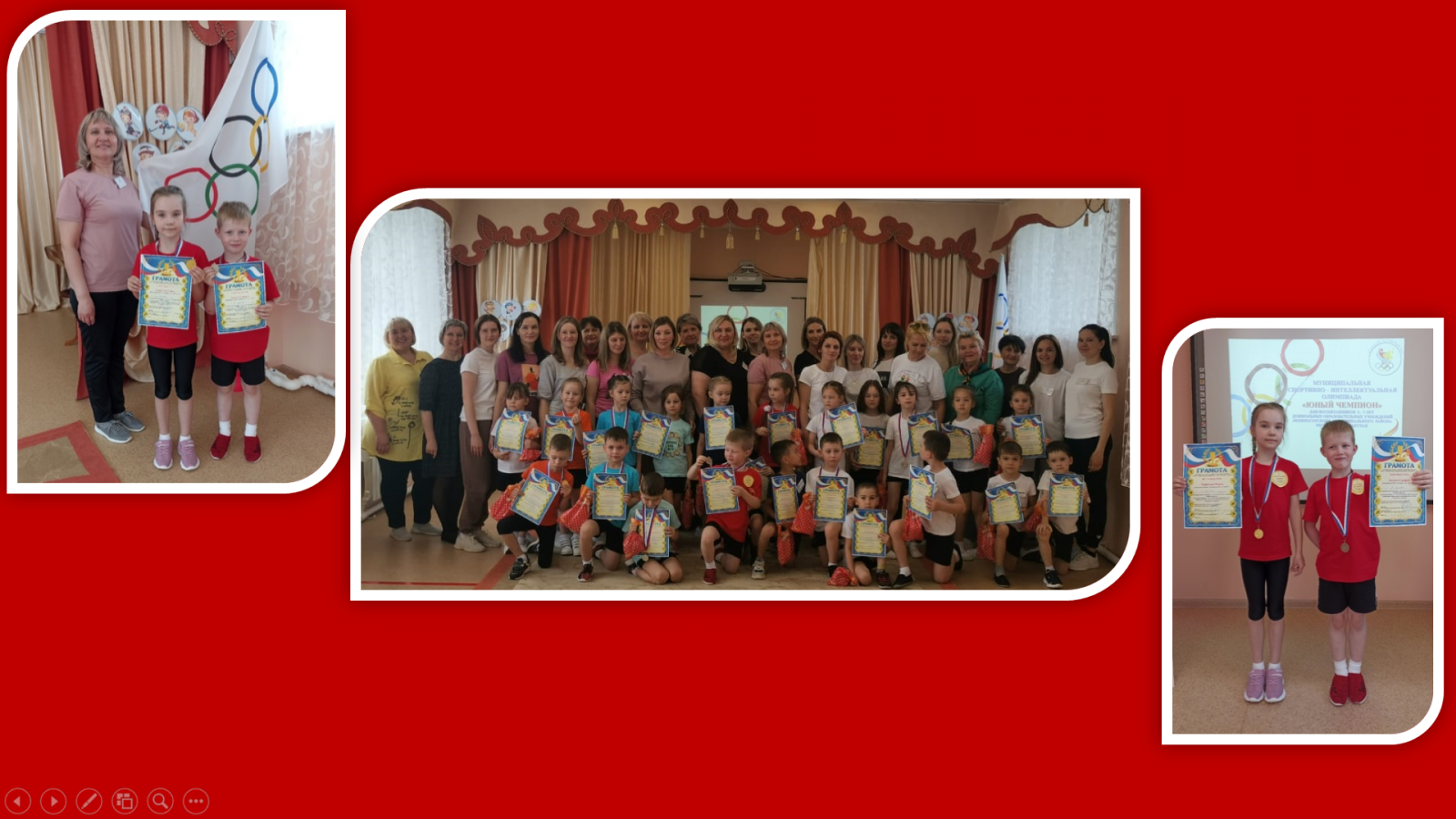 «Быстрее, выше, сильнее» - под таким девизом 5 мая на базе нашего детского сада прошла муниципальная спортивно-интеллектуальная олимпиада «Юный чемпион» для воспитанников 6 – 7 лет дошкольных образовательных учреждений Лениногорского муниципального района. Олимпиада началась с церемонии открытия, после торжественной части юные спортсмены отправились на соревнование, которое включало в себя два испытания: интеллектуальное и спортивное. Юные чемпионы нашего детского сада достойно прошли все испытания и заняли почетные призовые места: Терентьева Мария - 1 место, Лысенко Серафим - 2 место. Мы желаем нашим воспитанникам дальнейших спортивных успехов и надеемся, что участие в подобных соревнованиях станет для них традицией. Такие мероприятия способствуют приобщению детей к спорту, укреплению здоровья, выявлению интересов, склонностей, спортивных способностей, развитию быстроты, ловкости, силы, выносливости детей.