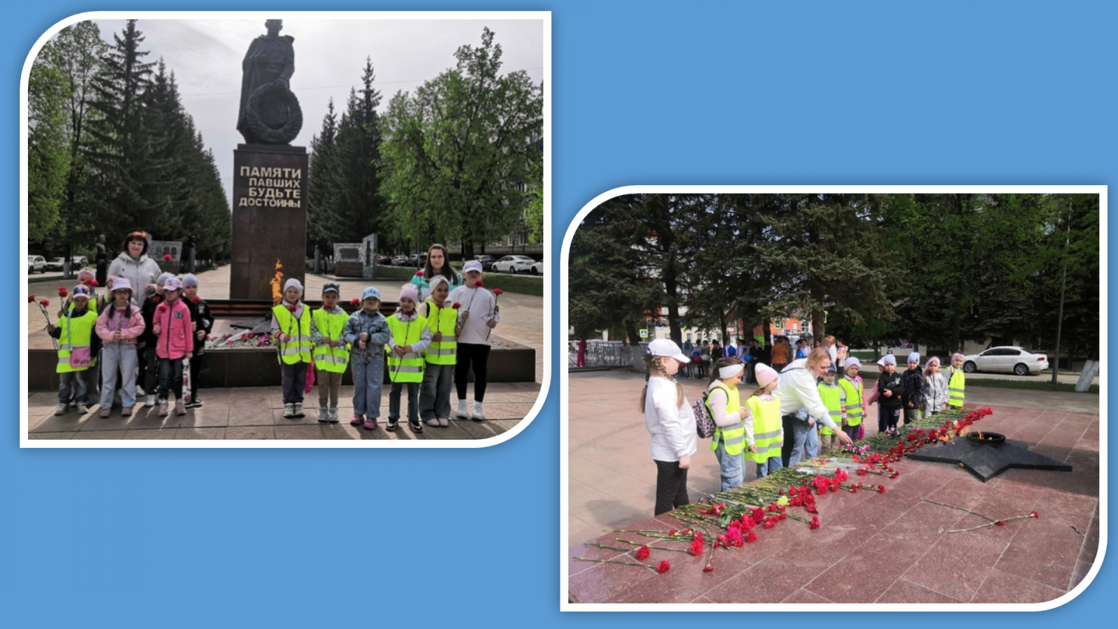 В преддверии празднования дня Победы Великой Отечественной войны для ребят подготовительной к школе группы была организована экскурсия к Вечному огню, с целью знакомство детей с родным городом,его достопримечательностями, донести до детей значение Победы советского народа в Великой Отечественной Войне, вызвать интерес к военной истории нашей Родины и армии, воспитывать любовь и уважение к воинам-защитникам, помнить и бережно относиться к памяти о войне! Дошкольники с педагогами Мельниковой О.С., Гайнутдиновой А.М. возложили цветы к мемориалу, почтили память погибших минутой молчания.