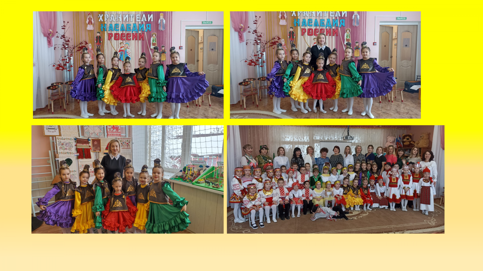 На базе МБДОУ «Детский сад №28» города Лениногорска 2 ноября прошел краевой фестиваль народного и современного творчества «Хранители наследия России» приуроченный ко Дню народного единства. Фестиваль организован при поддержке МКУ «Управление образования» ИК МО «Лениногорский муниципальный район», МБОДО «Лениногорская детская художественная школа им. М.Х.Хаертдинова», Лениногорский краеведческий музей. Цель фестиваля: сохранение исторического и культурного наследия и использование его для воспитания и образования детей. В фестивале приняли участие творческие детские коллективы и отдельные исполнители дошкольного возраста, представляющие музыкальный, песенный, обрядовый игровой фольклор с сохранением национальных исполнительских традиций. Наш детский сад представил детский коллектив подготовительной к школе группы «Сөенеч» - «Радость», музыкальный руководитель Романова Е.А. с татарским фольклорным танцем «Шома бас» - «Танцуй веселей». Через игры, танцы, песни дети ещё раз закрепили традиции, обычаи народов Поволжья! Спасибо детишкам - артистам! Спасибо педагогам, за подготовку к выступлению! Фестиваль получился добрым, поучительным, ярким, весёлым, подарил всем-всем массу положительных эмоций и незабываемых впечатлений!