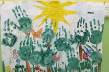 Лето - удивительная и благодатная пора, когда детям можно вдоволь гулять, бегать и прыгать. Именно в этот период они много времени проводят на воздухе. И очень важно так организовать жизнь дошкольников, чтобы каждый день приносил им что-то новое, был наполнен интересным содержанием, чтобы воспоминания о летнем времени, играх, прогулках, праздниках и развлечениях, интересных эпизодах из их жизни еще долго радовали детей. В тоже время летом появляется больше времени, которое можно посвятить творчеству детей. Можно попробовать нетрадиционные техники рисования. Рисование ладошками может быть увлекательным способом быстрого и простого создания изображений. Дети второй младшей группы №1 с воспитателем Шараповой Р.Ф. выполнили коллективную картину «Лето» в нетрадиционной технике. Для развития творческого потенциала рекомендуется давать детям возможность определить созданный образ и дополнить его недостающими деталями.