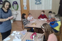 В творческой мастерской зимнего пришкольного лагеря дети с удовольствием изготовили замечательные поделки из бумаги сложенной гармошкой.
