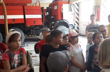После завтрака ребята отправились на экскурсию в ПЧ-№11(пожарная часть), где им рассказали и показали, как работают пожарные. После этого ребятам были предложены прогулка и игры на свежем воздухе.